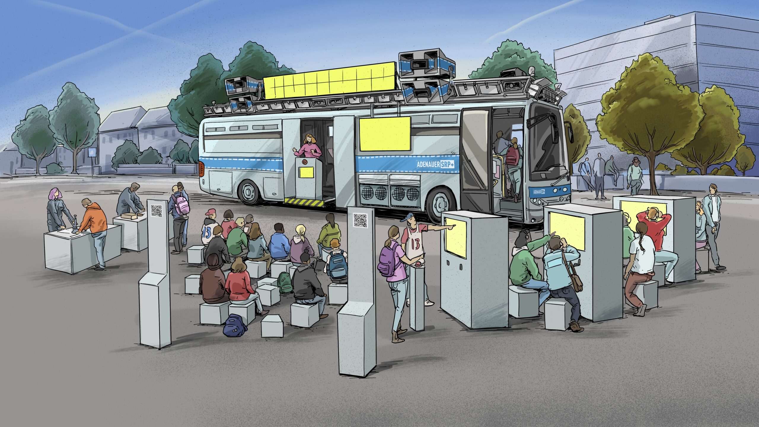 Stell dir vor, ein ganzer Bus voller Materialien, Videos und Spiele für eine gerechte, vielfältige und demokratische Gesellschaft parkt auf deinem Schulhof. Das ist der Adenauer SRP+! Es geht um Rassismus, Rechtsextremismus, Menschenrechte, Fake News – und wer unsere Demokratie wie bedroht!